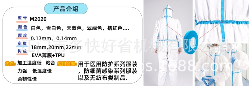 ● 用于医用防护系列服装,防细菌感染系列服装以及无纺布类制品。