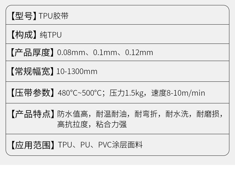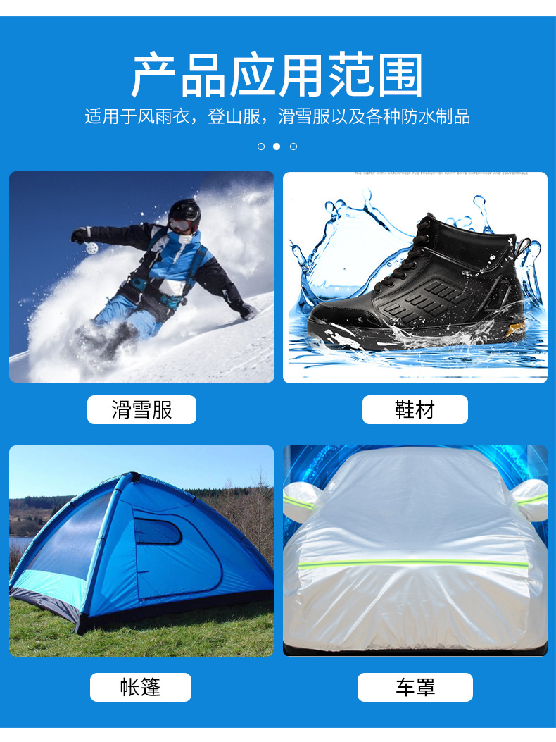 ● PVC、PU、TPU涂层面料,如雨衣,登山服,滑雪衣以及各种防水制品等。
