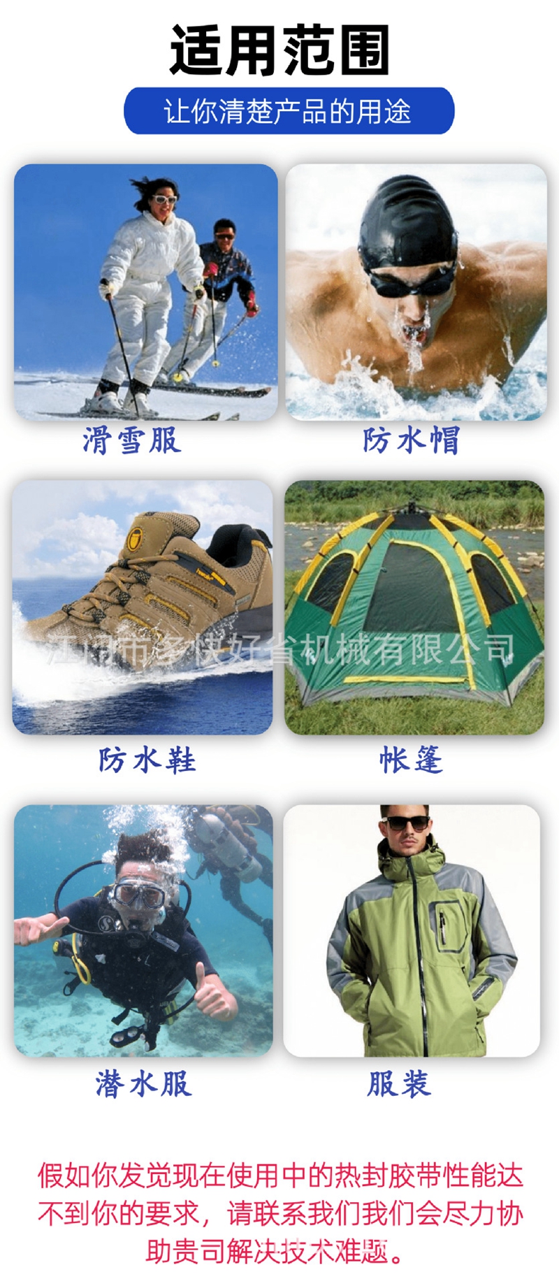● 滑雪服、防水帽、防水鞋、帐篷、潜水服