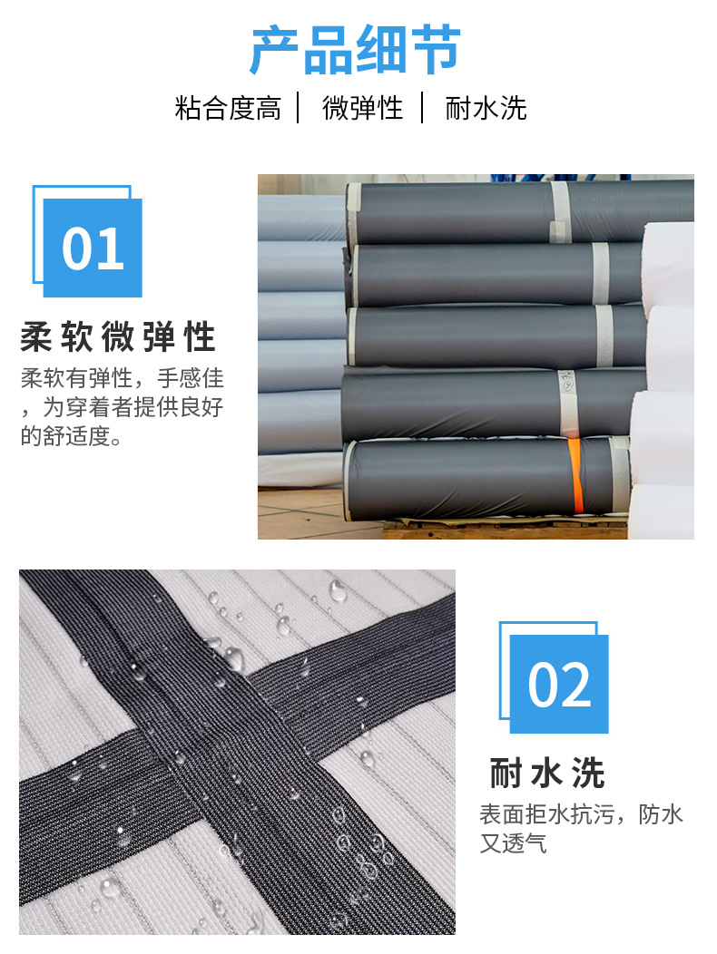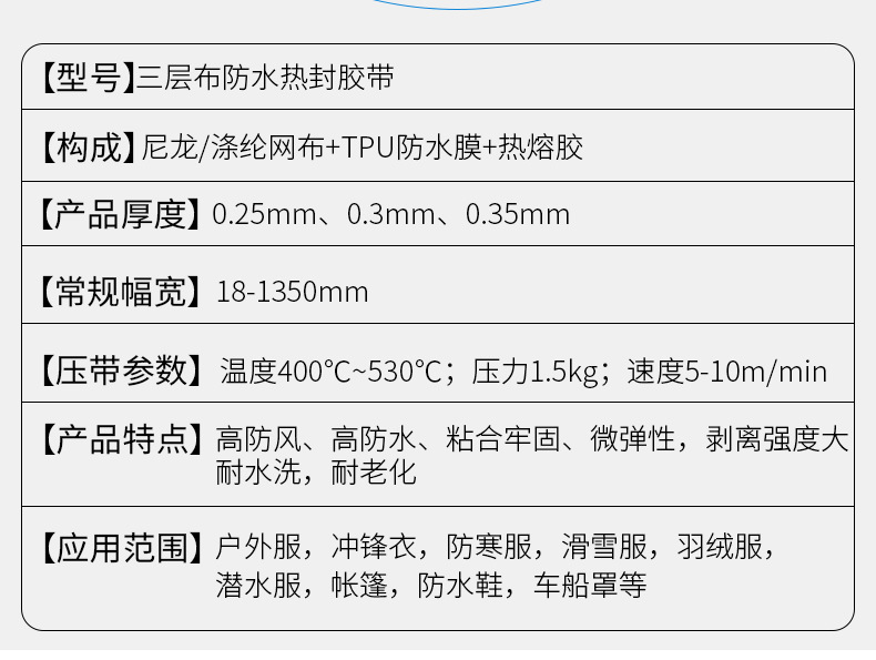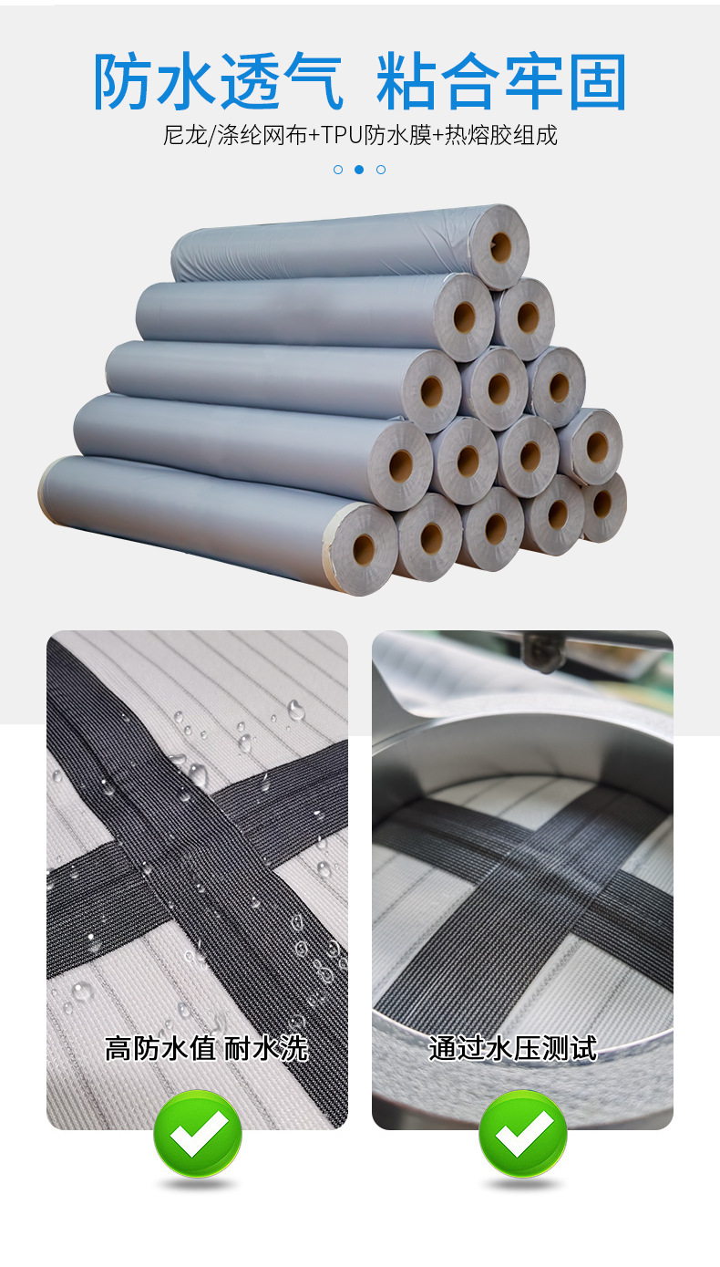 ● 构成:尼龙/涤纶网布+TPU防水膜+热熔胶